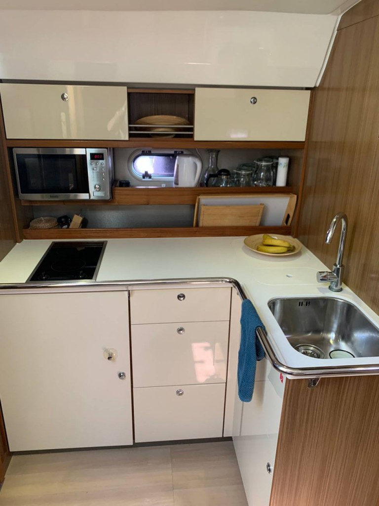 Bavaria 38 HT Sport – 2011 – Twee Volvo Penta D4-260 pk dieselmotoren – onderhoud uitgevoerd in mei 2025 en vaarklaar in juli 2025, accommodatie voor 4 personen verdeeld over 2 hutten met 1 toilet/douche. Specificaties: boegschroef, heteluchtverwarming, walstroomaansluiting, acculader, boiler, ankerlier, radar, GPS, Garmin GPS MAP 4012 kaartplotter, trimvlakken, magnetron, keramische kookplaat. Bootveiligheidskeuring geldig tot februari 2027. Een stijlvolle en moderne offshore cruiser met comfortabele accommodatie en een ruime cockpit om gasten te ontvangen.