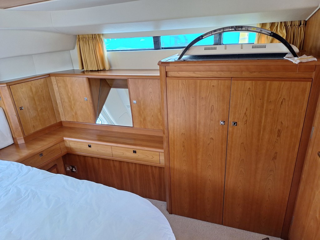 De sublieme accommodatie benedendeks is prachtig afgewerkt met interieurhoutwerk in satijnkersenhout.