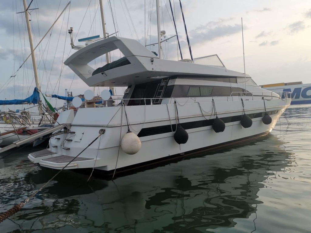 Schitterende Firebird 65 in perfecte staat. Motorjacht van één eigenaar, gebouwd door de Ferri-werf in 1996. Altijd met regelmaat en aandacht onderhouden. Interieur en uitrusting in nieuwstaat. Motor met zeer weinig draaiuren. De indeling omvat een grote dinette, een keuken met koelkast, marmeren aanrechtblad en inductiekookplaat, oven en vaatwasser. In het onderste gedeelte bevinden zich 3 hutten, waaronder 2 gastenhutten met 2 eenpersoonsbedden en hun eigen badkamer met douche, en een masterhut in de boeg met kleedkamer en eigen badkamer met douche. Twee Furuno-instrumenten op de flybridge, een groot solarium in de boeg en een aparte kapiteinshut met bijbehorende badkamer. RINA, onlangs opgeleverd met vervaldatum in 2029.