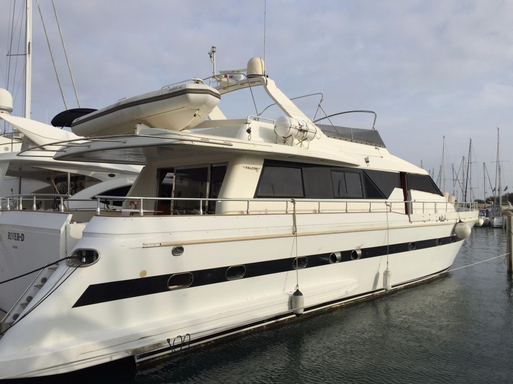 Code 22 Deze FALCON 82 motorjacht is ideaal voor het leven aan boord, met al zijn uitrusting, zeer ruim met zijn 6 hutten, waaronder een master met een slaapplaats van 200x200, zijn salon, zijn dubbele eethoek, zijn grote keuken (dubbele koelkast) alle onderhoud aanwezig inruil mogelijk alle opties lijst op aanvraag