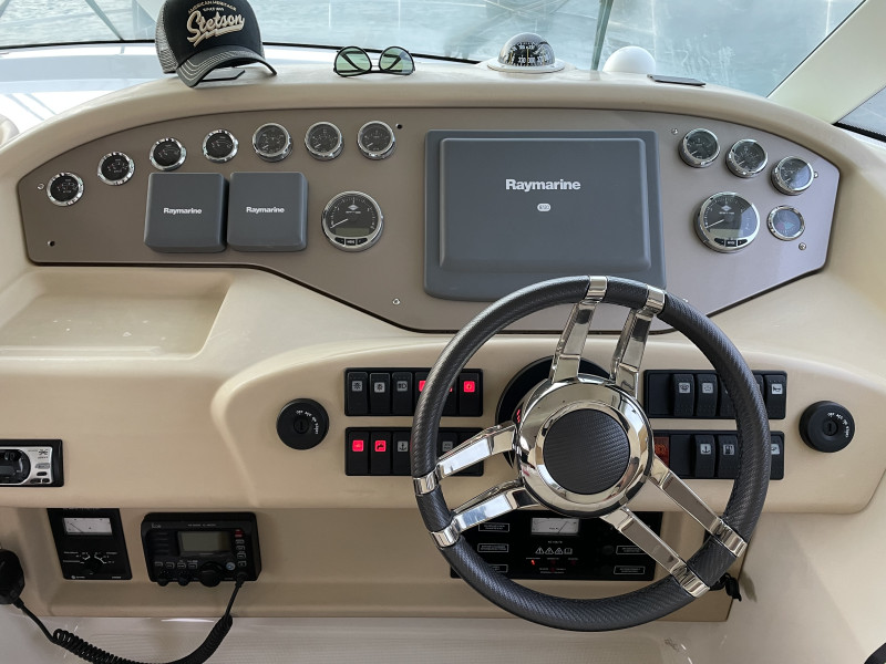 en hekschroef met afstandsbediening, vernieuwd in 2022. Groot zonnedek met routestiksels inclusief hoes op het voordek, vernieuwd in 2023. Alle bekleding op de flybridge, inclusief stoelen, volledig vernieuwd in 2022. Alle cockpitbekleding vernieuwd in 2022. Automatische satellietantenne inclusief tv in de salon en eigenaarshut. Nieuw Fusion geluidssysteem in de salon en cockpit (2023) inclusief subwoofer en versterker. De gehele boot is voorzien van LED-verlichting met afstandsbediening en diverse kleuren.navigatieAutopilot, echolood met repeater, fishfinder, GPS met repeater, kaartplotter met GPS, kompas met repeater, radar, logboek met repeater